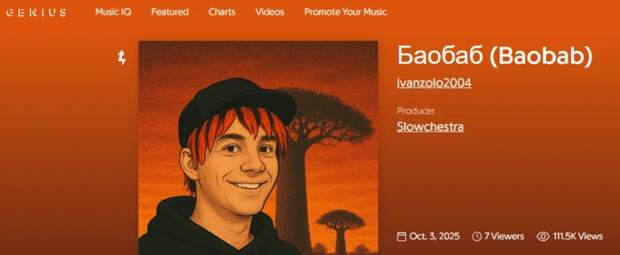 Артист обошел мировых знаменитостей, таких как Тейлор Свифт и Radiohead — текст его песни посмотрели на платформе более 195 тысяч раз.Смысл трека «Баобаб»
