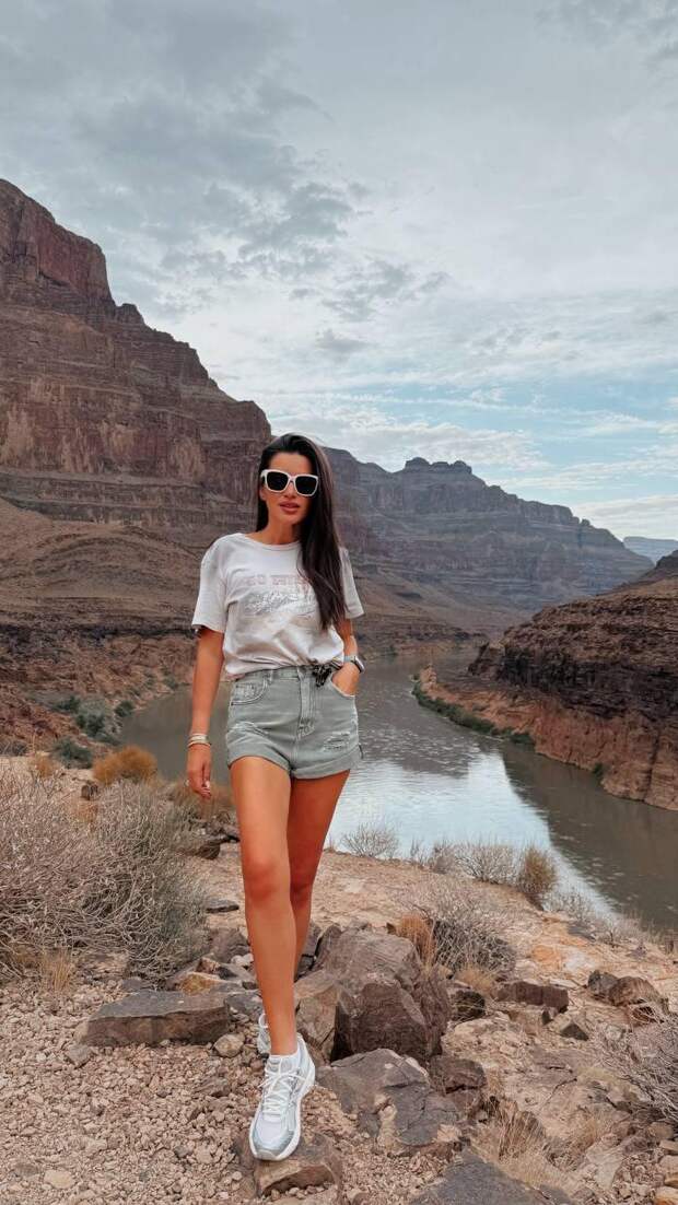 Следующей остановкой стал Гранд-Каньон. Это завораживающее место внесено в список Всемирного наследия ЮНЕСКО и уже много лет привлекает миллионы туристов своими впечатляющими геологическими образованиями, включая огромную толщу древних пород и скал. Здесь Ксения и Николай организовали спонтанную фотосессию.